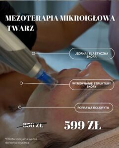 Jeśli Twoja skóra potrzebuje odświeżenia, nawilżenia i widocznego efektu „wow” – to idealny moment. Mezoterapia mikroigłowa to zabieg, który intensywnie pobudza skórę do regeneracji i poprawia jej kondycję od wewnątrz. Tylko do końca stycznia!